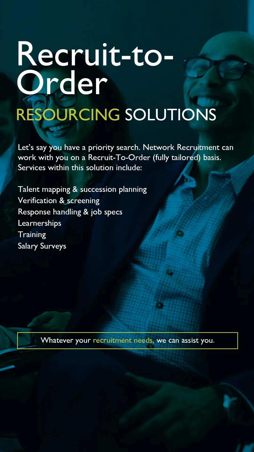 Network Recruitment delivers qualified candidates fast and runs streamlined screening sessions that compress weeks of interviewing into a single focused block.